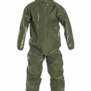 0DuPont™ Chemical Resistant Coverall, Series: C4168T, 4XL, Green, Tychem® CPF 4, 8.4 oz/sq-yd Fabric Weight, Elastic Cuff, Taped Seam, Zipper and Single Storm Flap With Double Sided Adhesive Tape Closure