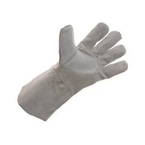 - Wide gauntlet style cuff is split cow grain and has a gusset for ease of donning