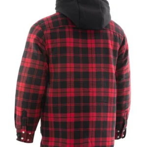 Red Plaid Hooded Quilted Flannel Shirt Jacket