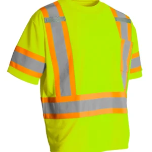 Hi Vis V-Neck Short Sleeve Safety Tee Shirt with 3M Reflective Tape