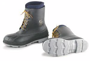 0Wolf Pac 10″ Steel toe with cleated outsole. Polyblend compound. 100% Waterproof protection for cold weather industries. Steel toe style complies with ASTM F2413-05. PVC injection molded construction. Bellows tongue for easy entry and exit. Roomy toe vault prevents pressure on toes and maintains healthy circulation in cold temperatures. Heavy duty, 5-lbs. Wool felt liner with reinforced heel. For use in: freezer lockers and cold storage units, cold weather industrial environments, cold weather sports, food processing, poultry processing and fish processing.